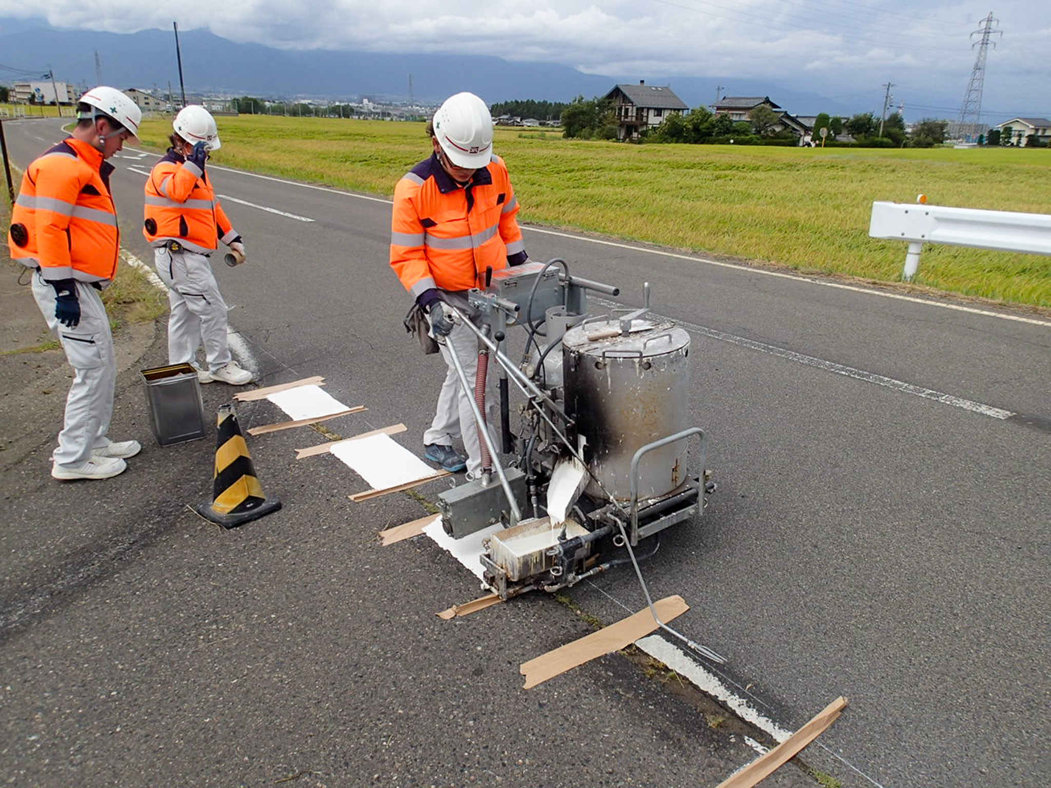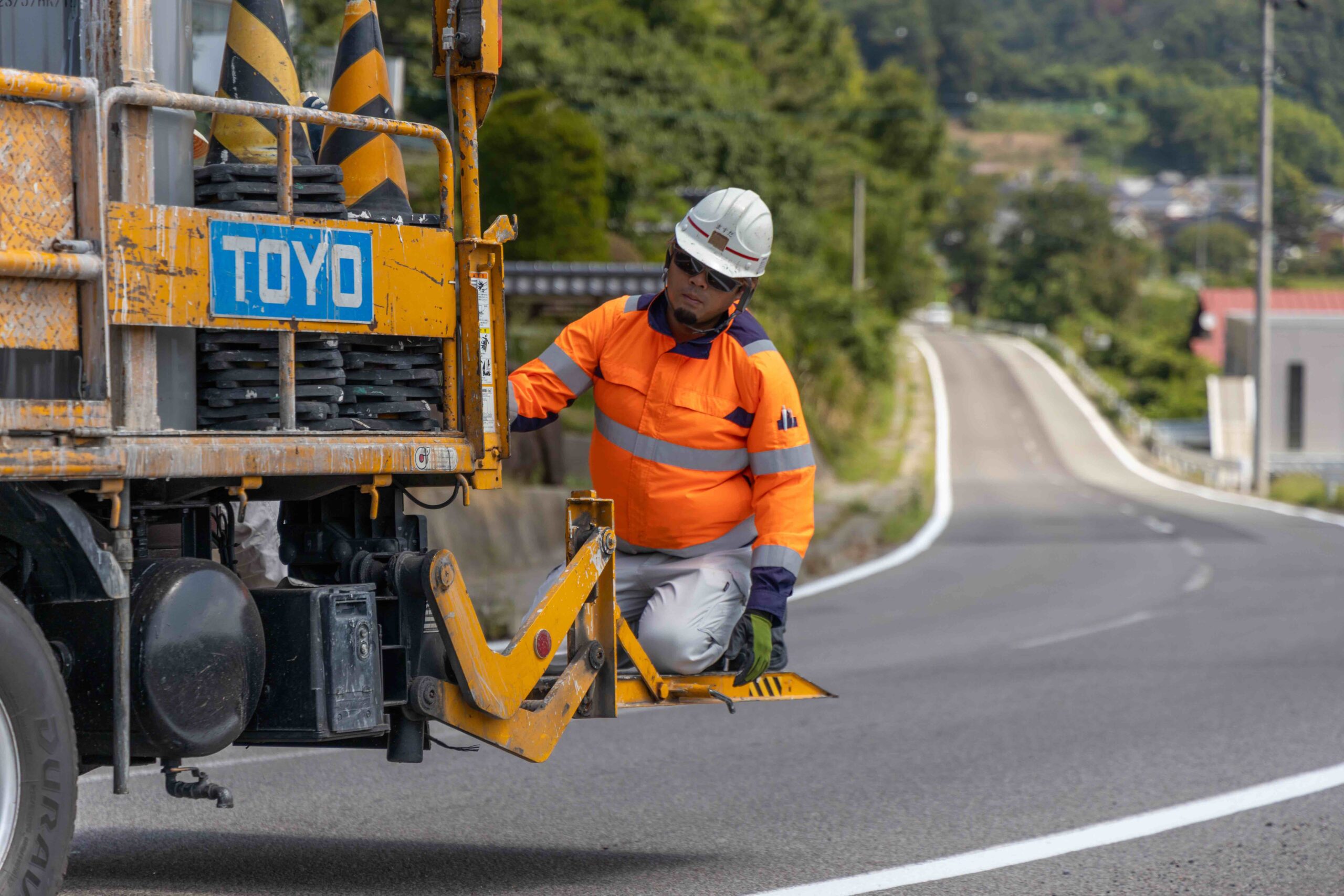 交通安全施設とは、転落防止柵やカーブミラー、矢印看板などのことを指します。これらを設置することも我々の仕事です。